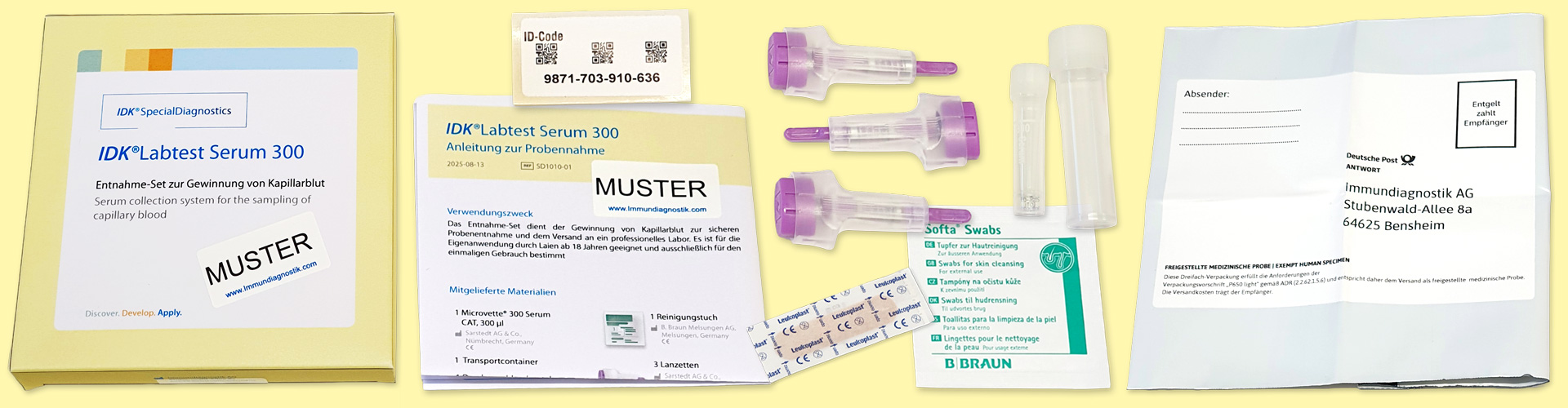 • Probenentnahme-Set zur Selbstentnahme einer Serumprobe aus der Fingerbeere